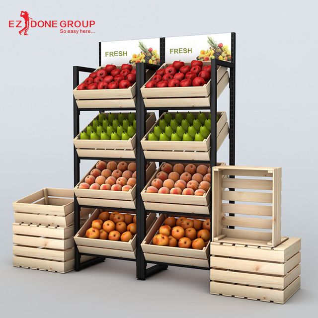 Memperbaiki tampilan: Rak display buah membantu menyajikan buah-buahan dengan cara yang menarik dan estetis, sehingga menarik perhatian pelanggan dan meningkatkan daya tarik produk.